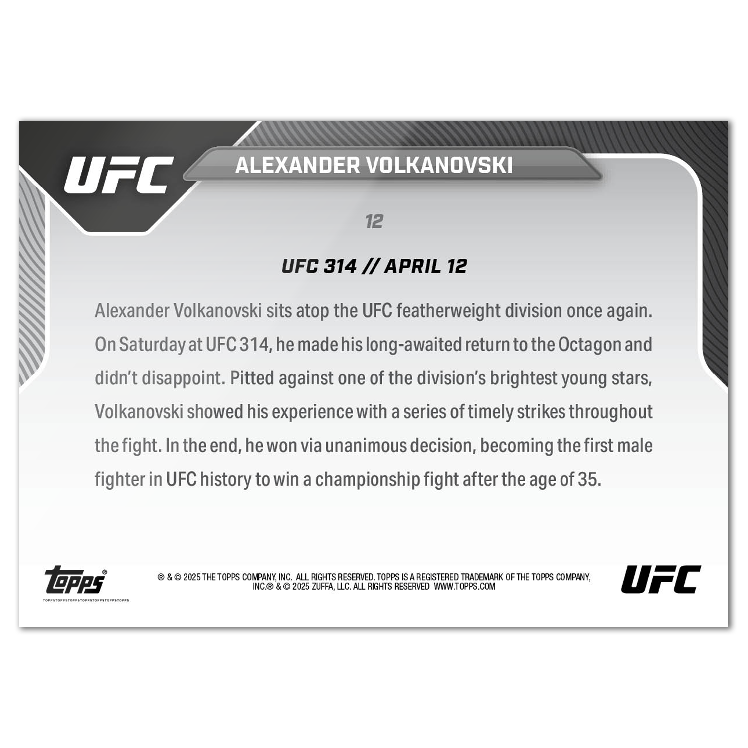 Alexander Volkanovski - 2025 UFC Topps NOW® - Card 12 - LOOK FOR AUTOS