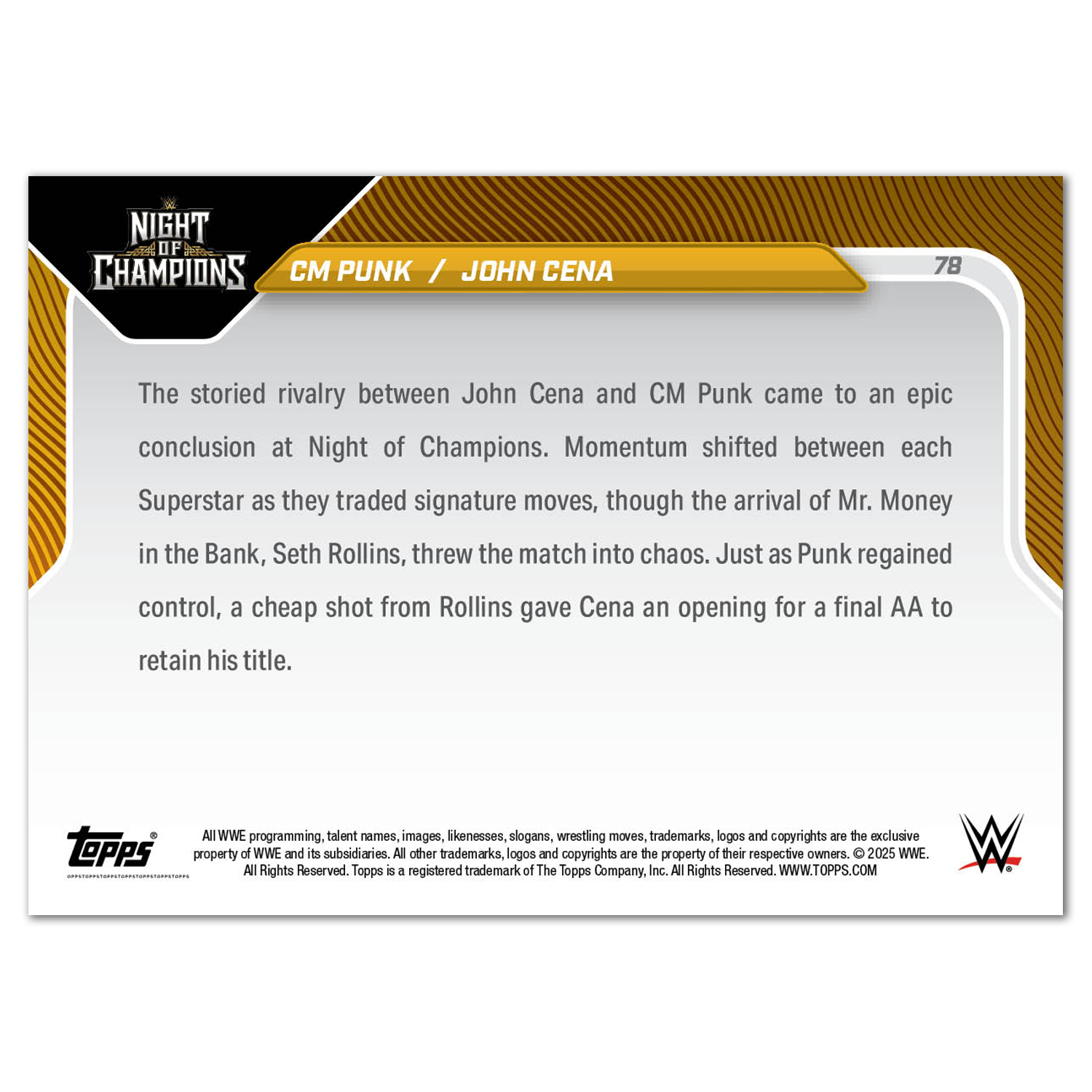 Topps NOW celebrates the greatest moments... as they happen! Only available at Topps.com. Print runs for every card are released in the WWE Topps NOW Archive.