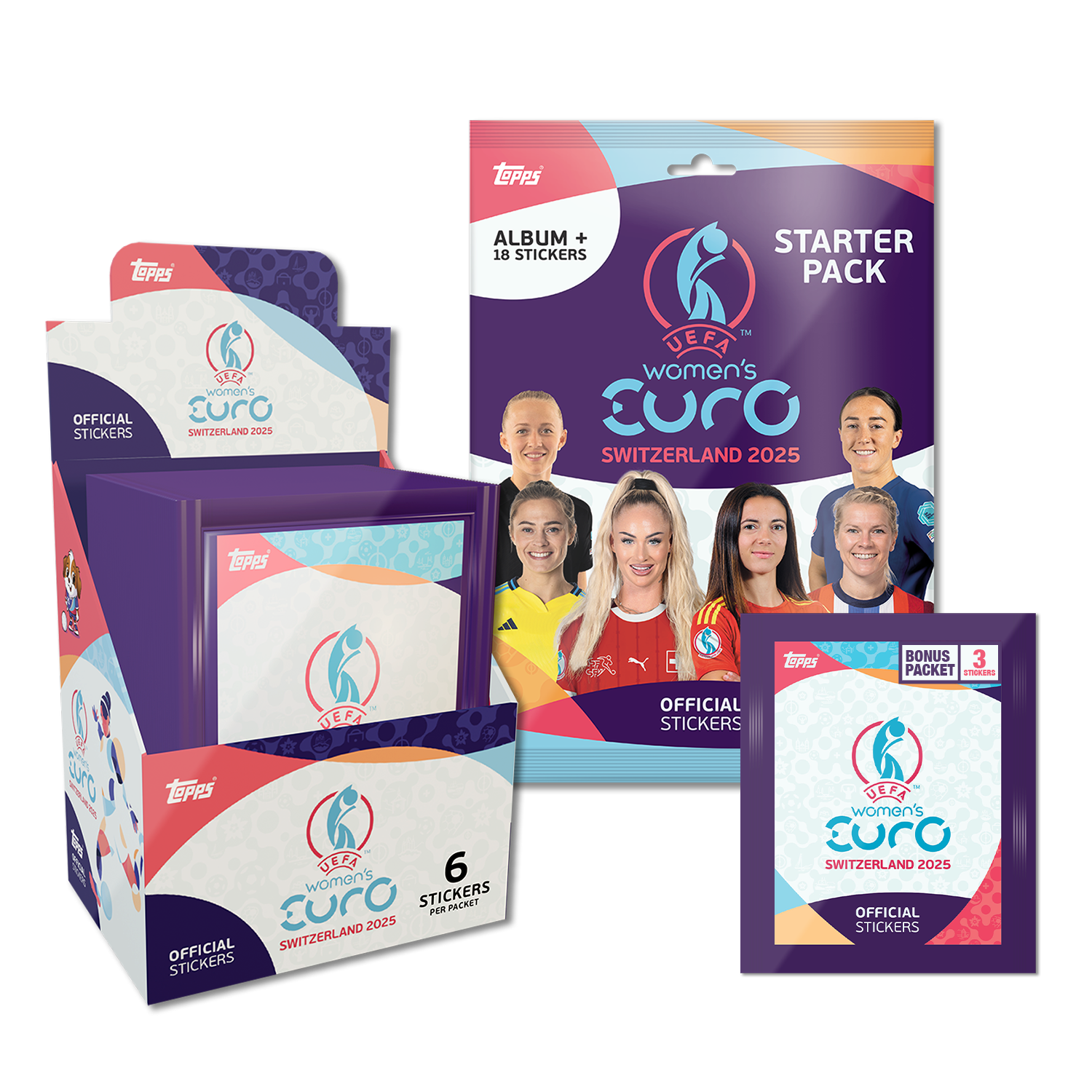 La collezione inaugurale di figurine Women's Euro di Topps è arrivata e celebra il torneo Women's Euro 2025 con un fantastico album di 40 pagine e 308 figurine da collezionare, provenienti da tutte le 16 nazioni qualificate.